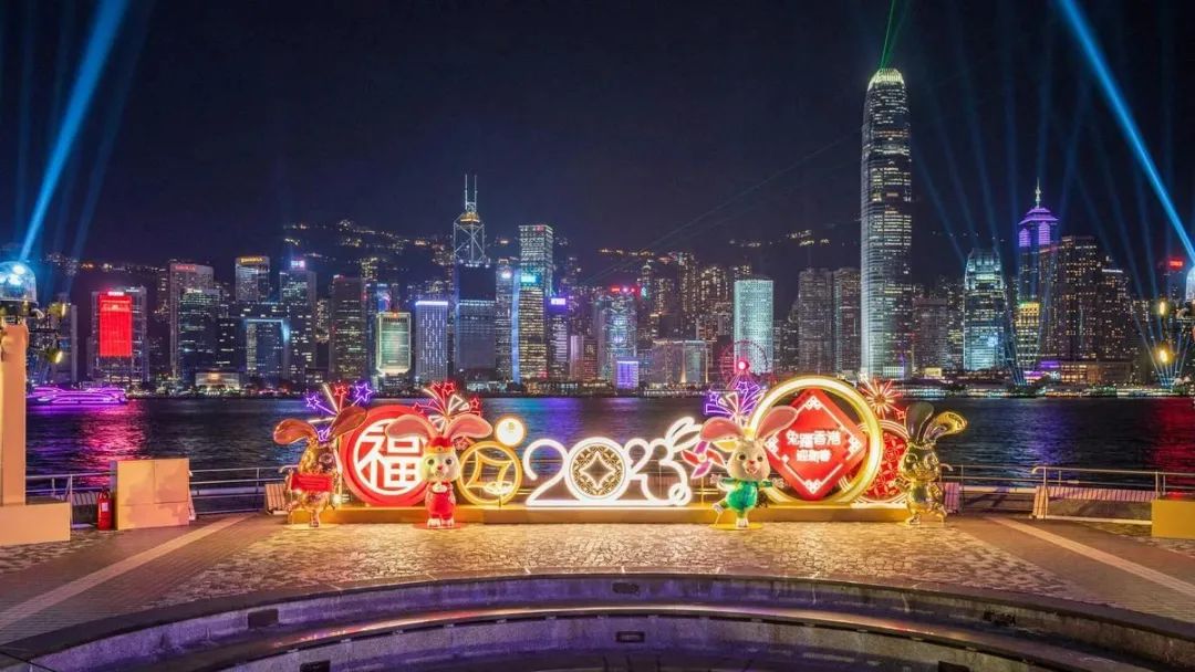 為慶祝兔年的來臨,大型燈光音樂匯演「幻彩詠香江」加強版於維港兩岸每夜上演,以不計其數的激光及探射燈,伴隨充滿活力的交響樂,營造出閃爍動感、聲光交織的盛宴,令維港夜色倍添姿採。