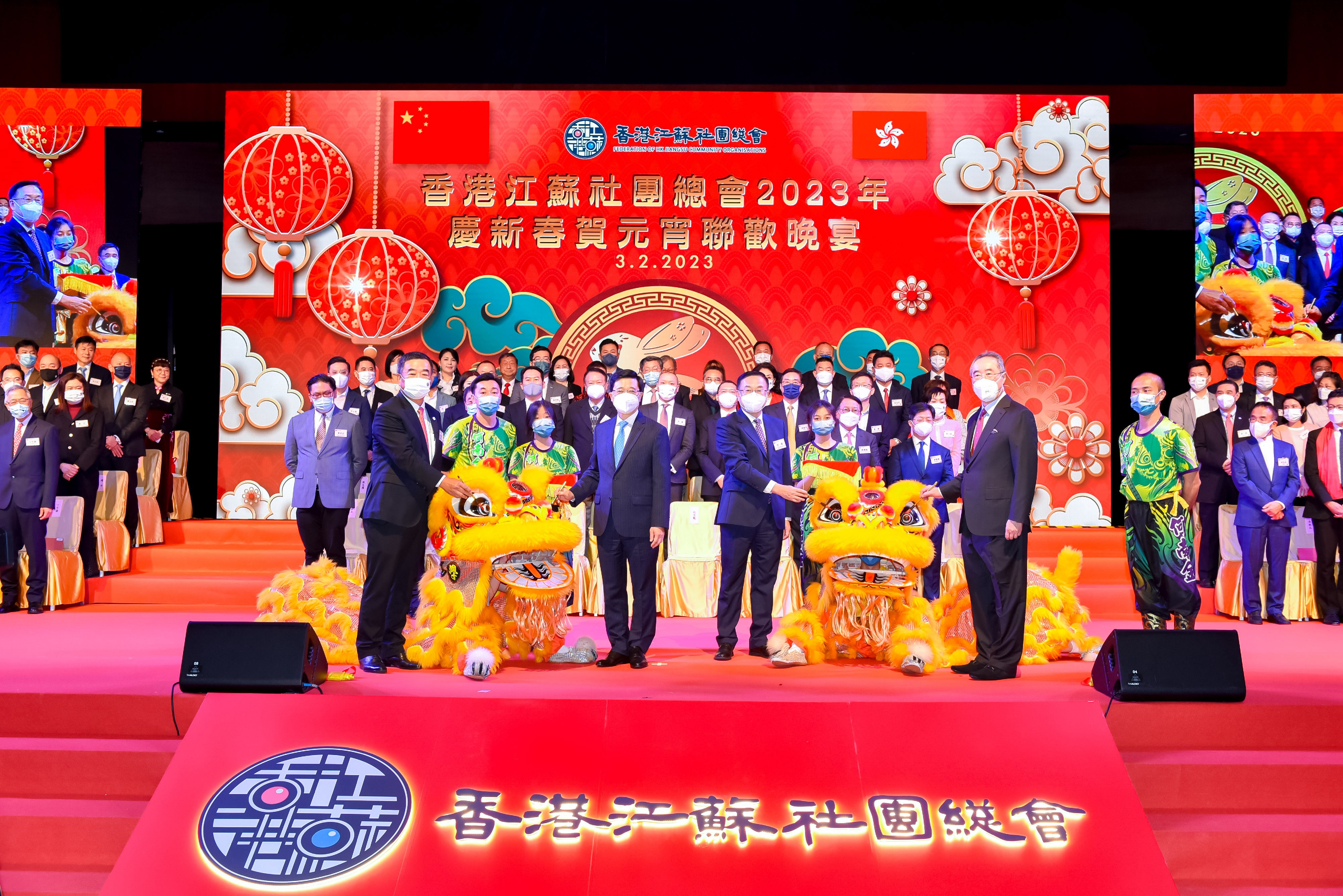 本網訊 2月3日,香港江蘇社團總會2023年慶新春賀元宵聯歡活動在香港會展中心舉行,我辦副主任何靖應邀出席,並與香港特區行政長官李家超、政務司司長陳國基、立法會主席梁君彥、保安局局長鄧炳強等共同主禮,社會各界嘉賓近800人出席。