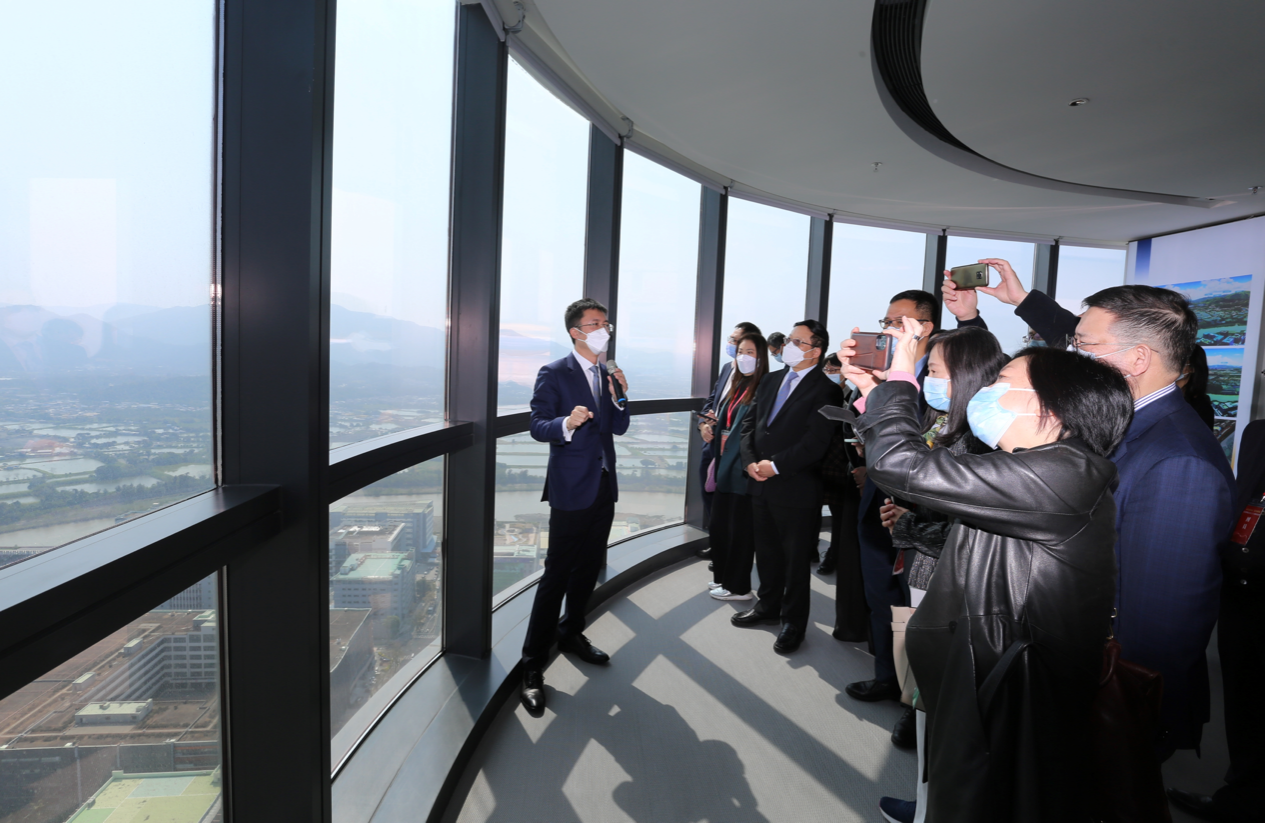 參訪深港協同創新中心,遠眺香港。(圖片來源:中央政府駐港聯絡辦)