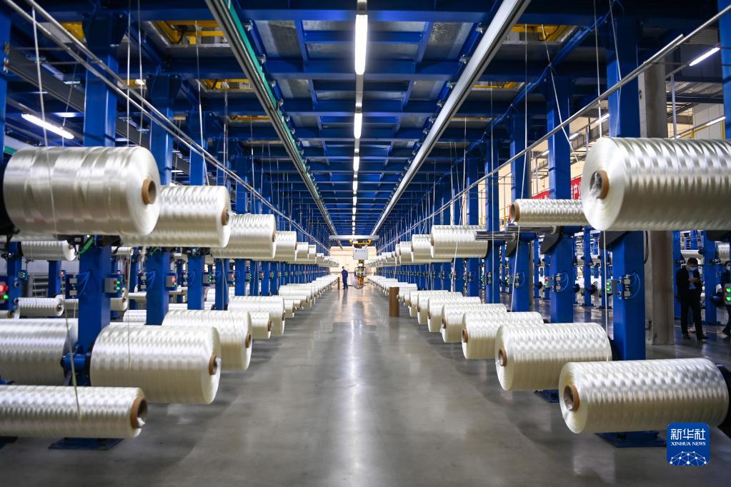 在吉林化纖集團國興碳纖維公司生産車間,工人在整理碳纖維原絲(2022年10月31日攝)。新華社記者 顏麟蘊 攝