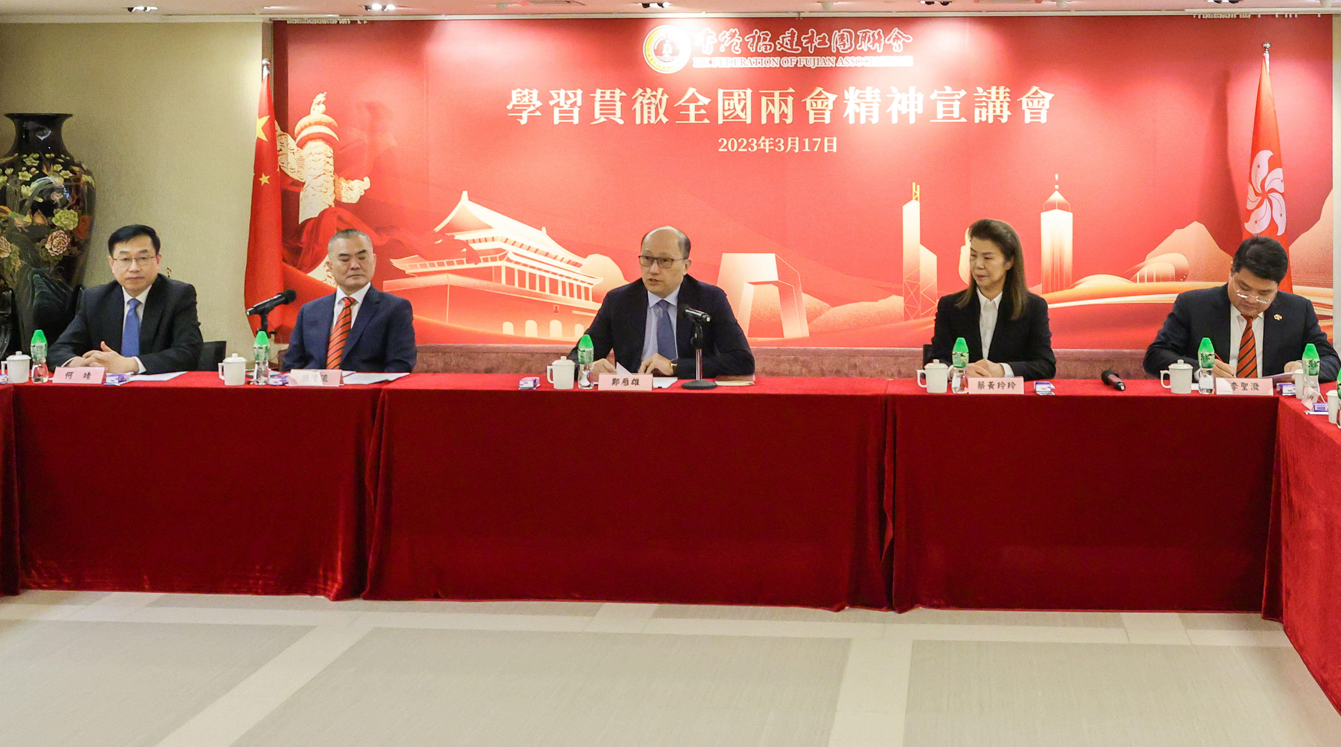 鄭雁雄出席香港福建社團聯會舉辦的學習貫徹全國兩會精神宣講會。(圖片來源:中央政府駐港聯絡辦)