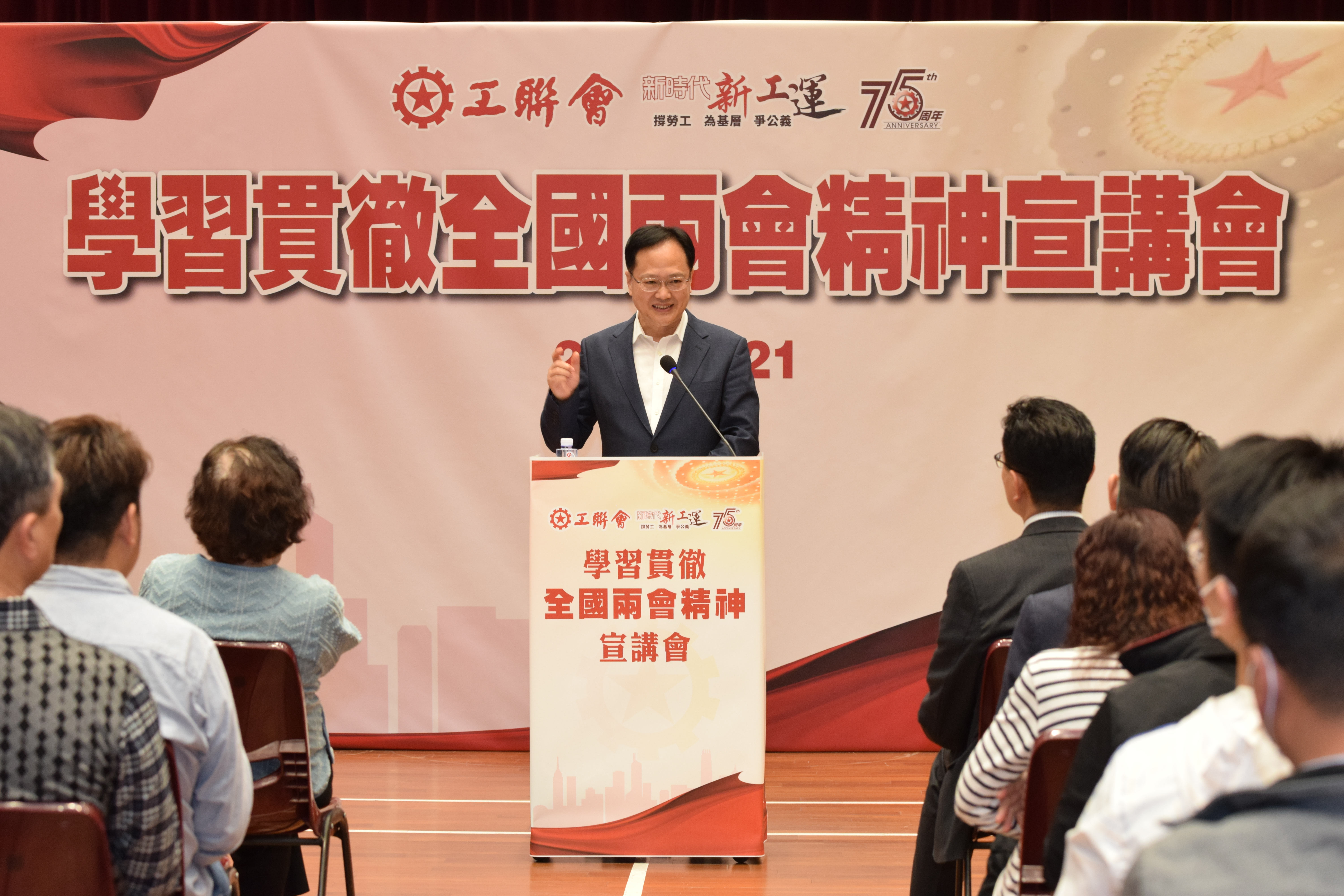 陳冬出席工聯會舉辦的學習貫徹全國兩會精神宣講會。(圖片來源:工聯會)