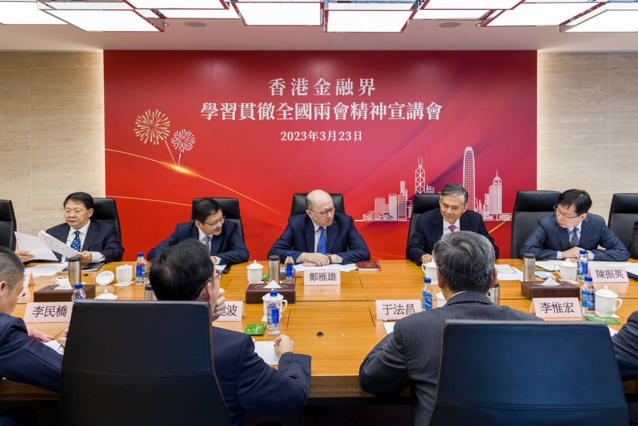 鄭雁雄表示,全國兩會全面貫徹了黨的二十大的戰略部署,始終充滿了「兩個維護」的濃厚氛圍和民主議政、依法治國、團結奮進的氛圍,意義重大、成果豐碩、內涵豐富。香港地區貫徹落實全國兩會精神最基本的立足點就是把握好中國式現代化的香港機遇、香港貢獻,把握好香港發揮獨特地位和優勢的方向路徑。未來五年是中國式現代化的關鍵期,也是香港大有可為的戰略主動新階段,抓住這一新階段關鍵期重要機遇,香港必須深入反思過去、深情展望未來、把準發展方向。香港金融界要做好「有序推進人民幣國際化」這篇大文章,在鞏固提升香港國際金融中心地位、促進內地經濟高質量發展和國家更高水平對外開放、維護香港和國家金融安全等方面深入謀劃、積極行動。創科界要以習近平總書記去年6月30日考察香港科學園時作出的重要指示精神為指引,貫徹全國兩會精神,進一步鞏固香港基礎研究優勢、強化産學研創新協同、推動香港創科融入國家發展大局、提升香港國際化水平,凝聚起加快建設香港國際創科中心的磅礡力量。
