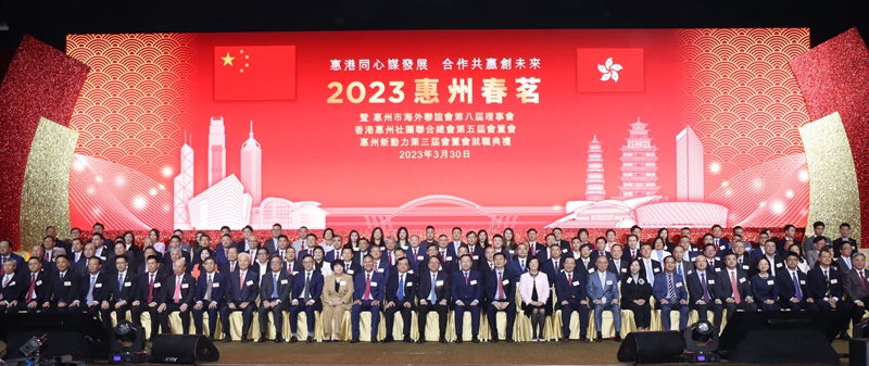 本網訊 3月30日,香港惠州社團聯合總會舉行第五屆會董會就職典禮。香港特區政府政務司司長陳國基、中央政府駐港聯絡辦副主任何靖、外交部駐港特派員公署副特派員方建明,廣東省、惠州市黨政領導等各界嘉賓1200多人出席。