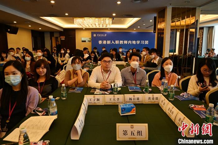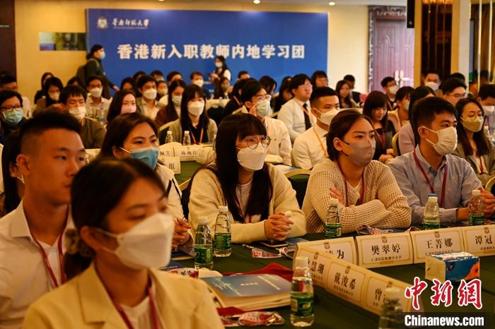 4月11日,為助力香港新入職教師的專業發展,體驗國家發展的最新成果,推動香港與內地基礎教育融合發展,由香港特別行政區政府教育局主辦的香港新入職教師內地學習團在廣東廣州華南師範大學舉行開班典禮。 (中新社記者 陳楚紅 攝)