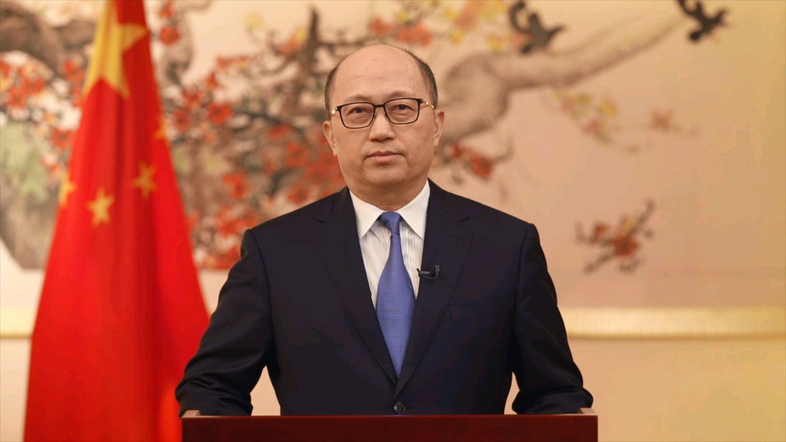 鄭雁雄視頻致辭。(圖片來源:中央政府駐港聯絡辦)