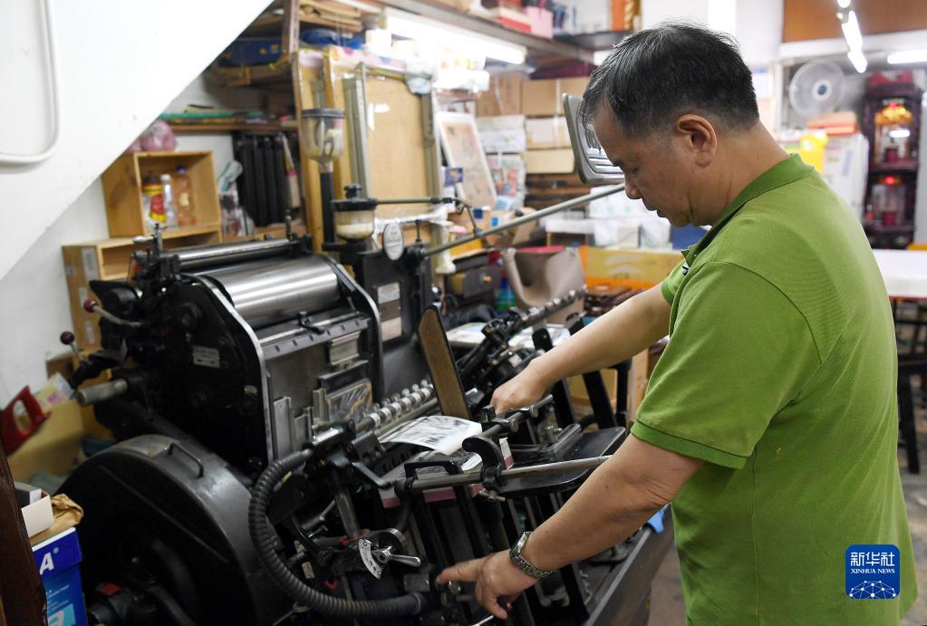 在任偉生的店舖裏,兩部引人注目的印刷機,佔據了室內近半的空間。