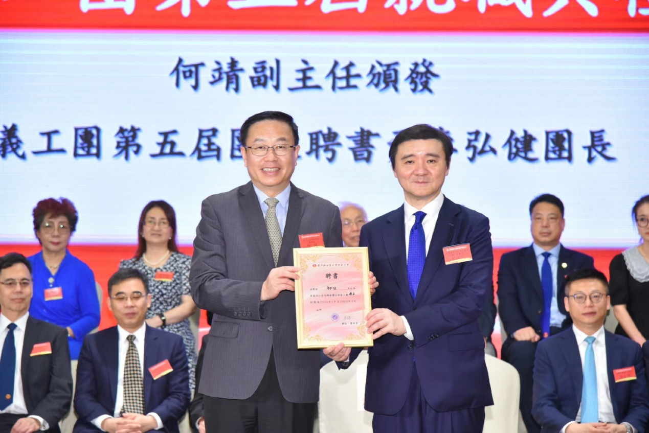 何靖副主任為車弘健團長頒發聘書。(圖片來源:中央政府駐港聯絡辦)