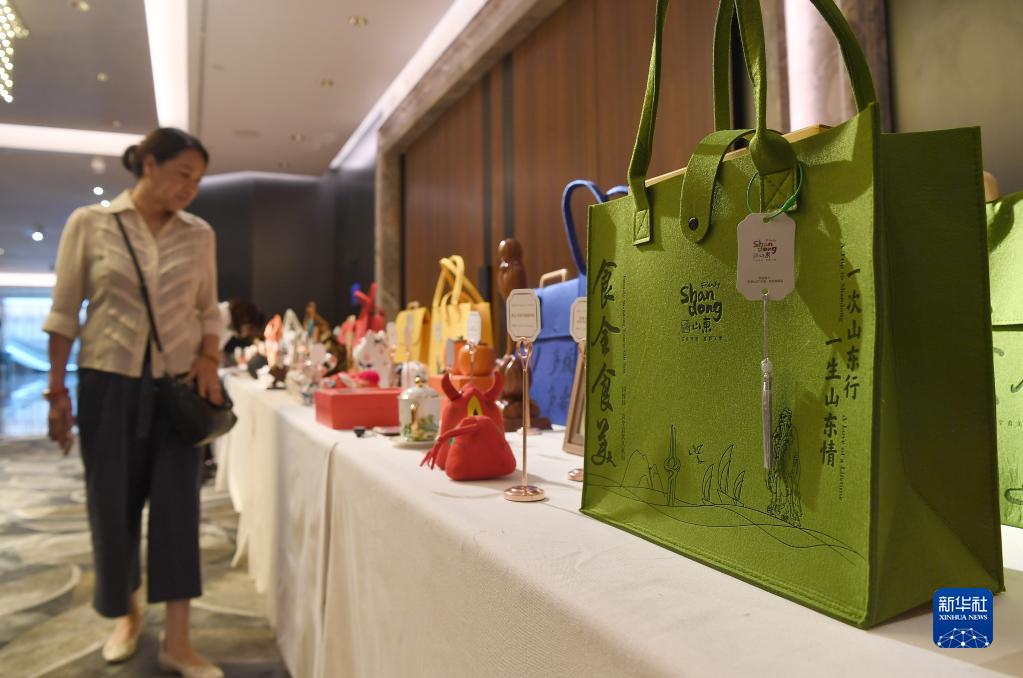 5月31日,嘉賓在會場之外的展區了解山東特産。(新華社記者 陳鐸 攝)