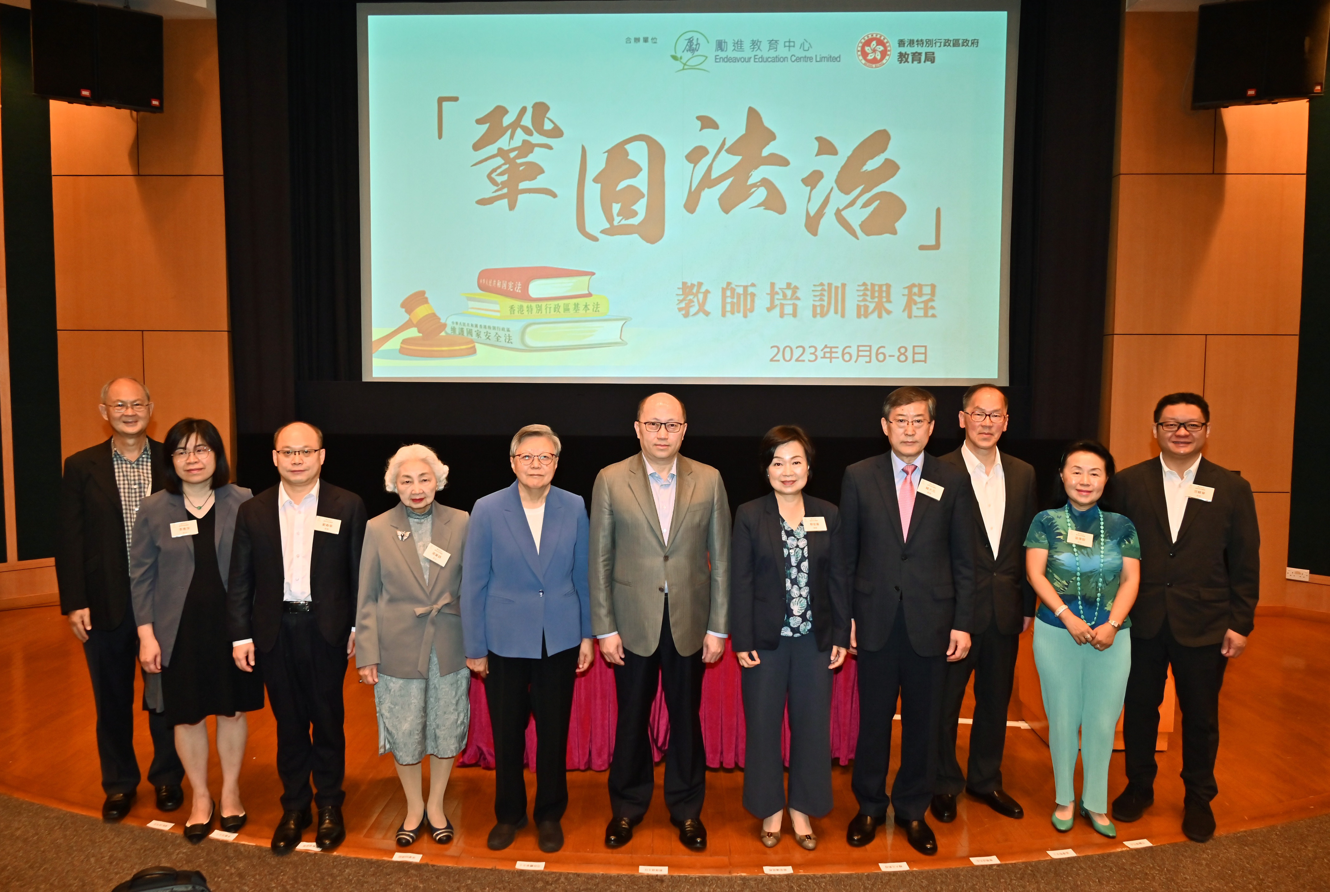 本網訊 6月6日,勵進教育中心和香港特區政府教育局合辦的第10期「鞏固法治」教師培訓課程開課,中央政府駐港聯絡辦主任鄭雁雄出席開學禮並致辭。勵進教育中心理事會主席范徐麗泰、特區政府教育局局長蔡若蓮,以及勵進教育中心理事會部分理事等共同主禮。