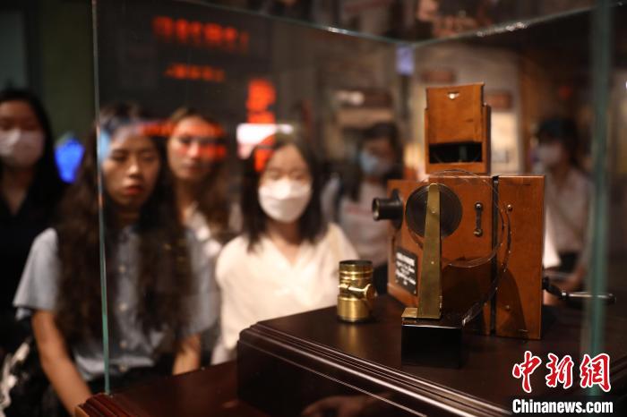 6月12日,參加2023年「港澳大學生文化實踐活動」的港澳學生參觀中國電影博物館。(中新社記者 李雪峰 攝)