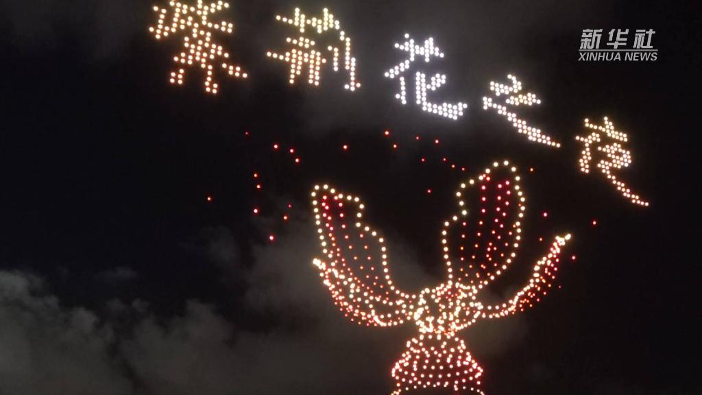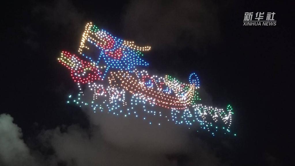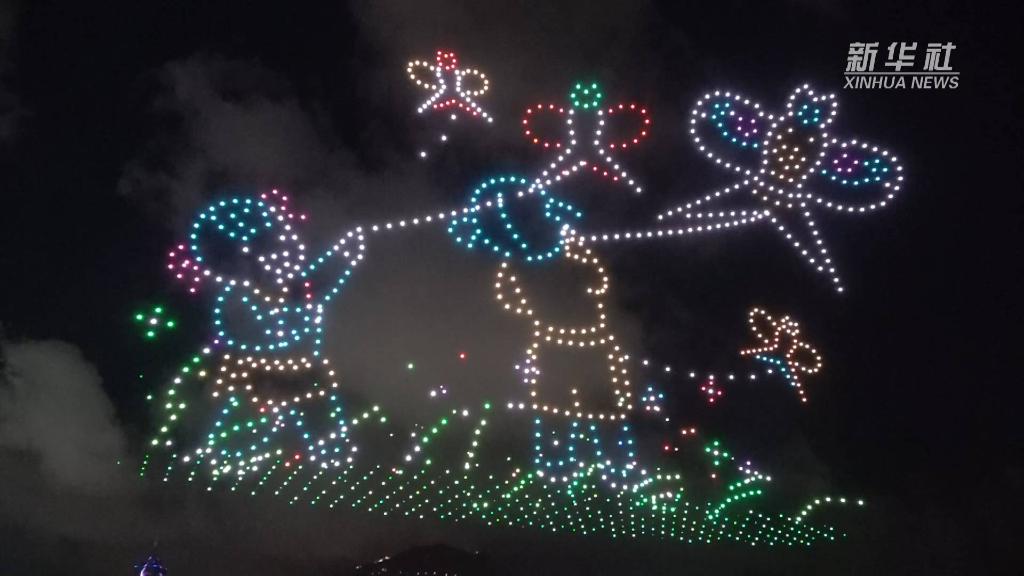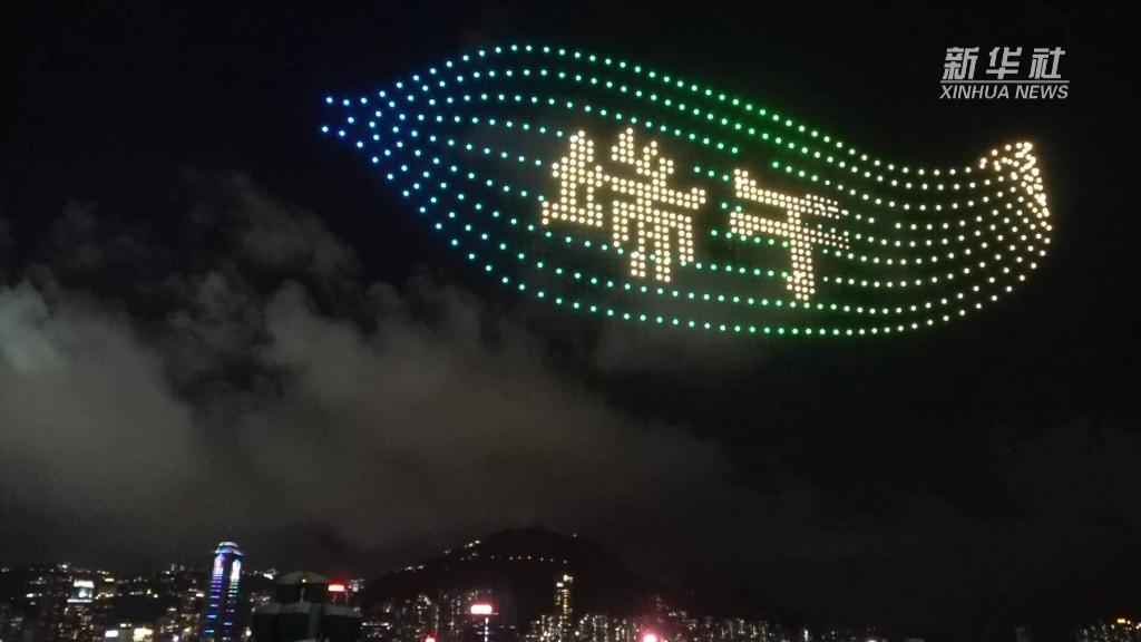 6月22日晚,上千架無人機在香港故宮文化博物館上空亮相,「紫荊花之夜」大型無人機燈光秀照亮維港天際。無人機編隊組合成色彩絢麗的多種圖案,祝福香港市民端午安康。