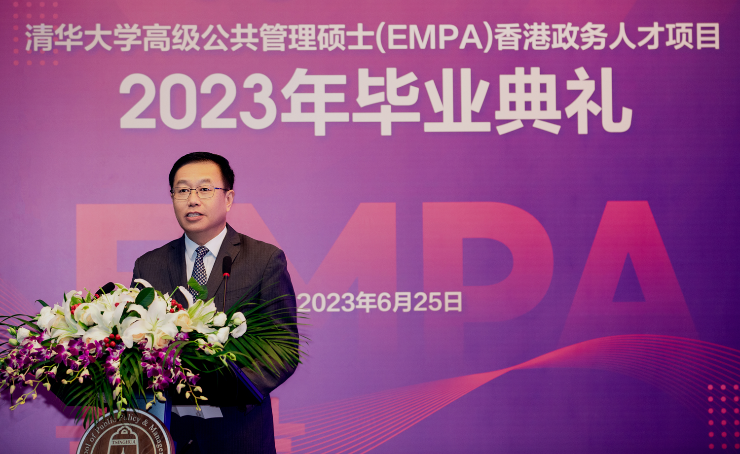 本網訊 6月25日,清華大學在校本部舉辦高級公共管理碩士(EMPA)香港政務人才項目2023年畢業典禮,2018、2019、2020三屆60多名畢業生一同參加。中央政府駐港聯絡辦副主任何靖,清華大學黨委常委、副校長彭剛,全國人大常務委員會委員、民建聯主席李慧琼,民建聯會務顧問、清華公管學院全球學術顧問委員會委員譚耀宗等出席並致辭。香港特區政府政務司司長陳國基視頻致辭。
