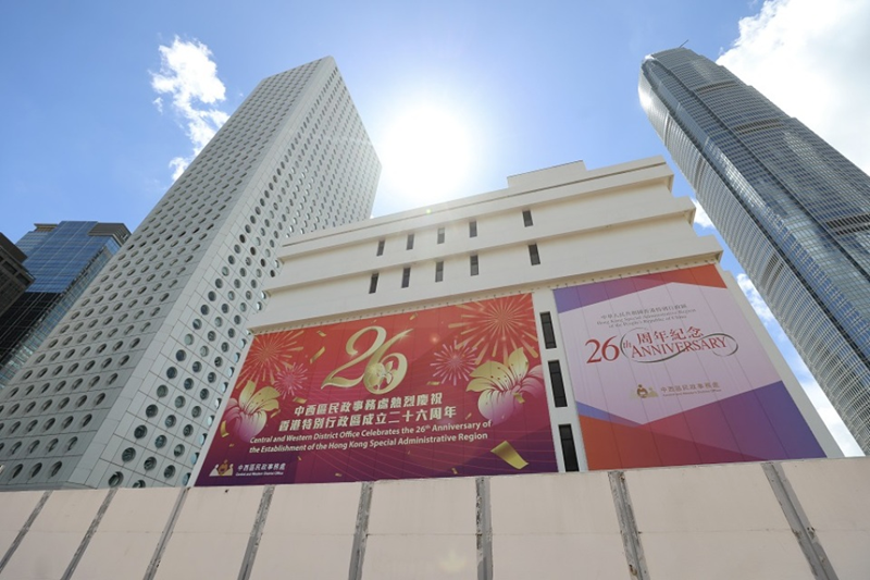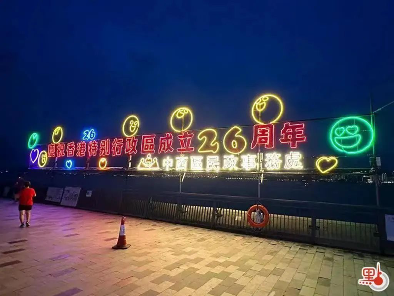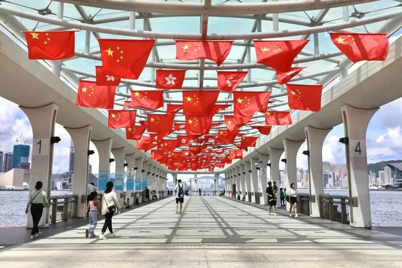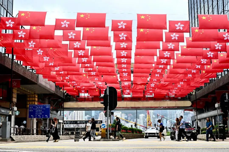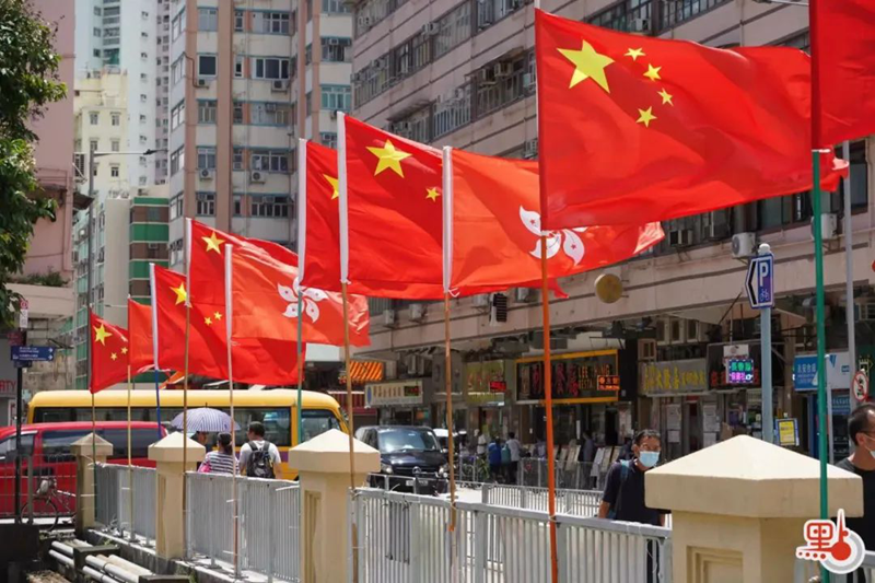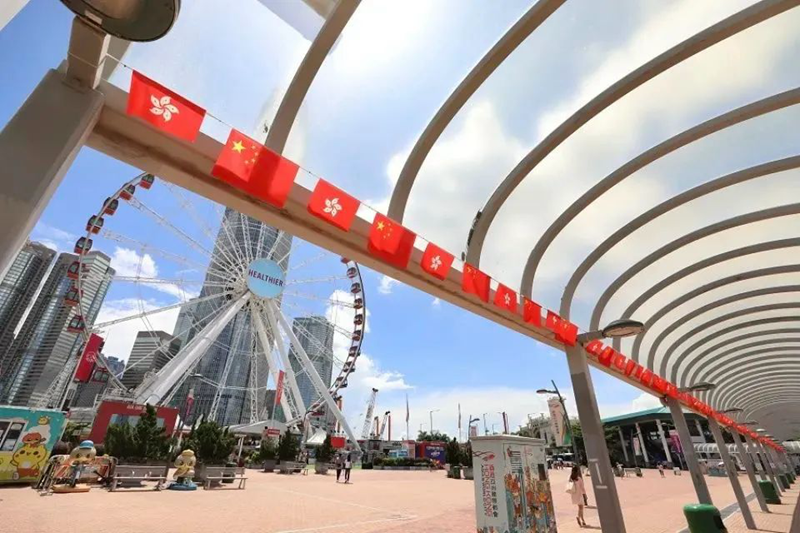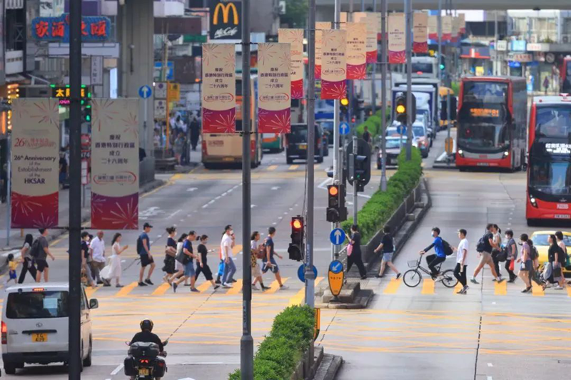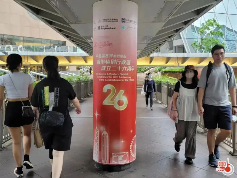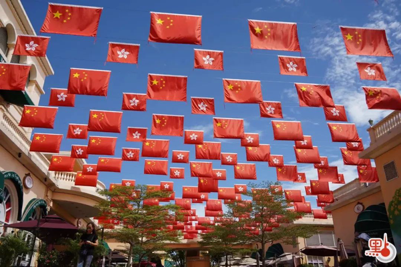 今年7月1日是香港回歸祖國26周年紀念日。「七一」臨近,香港街頭一片喜慶,旗海飄揚,處處可見「慶祝香港回歸祖國26周年」 「慶祝香港特別行政區成立26周年」 「背靠祖國 昂首向前「等祝福標語。大街小巷披上新裝,四處洋溢着慶祝的喜悅氣氛。