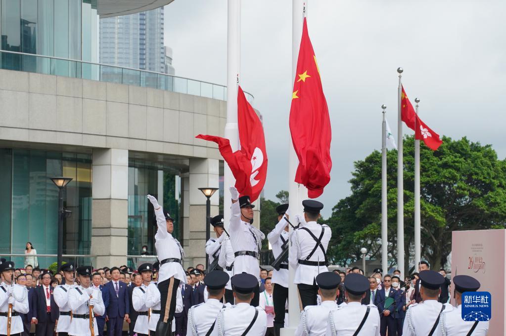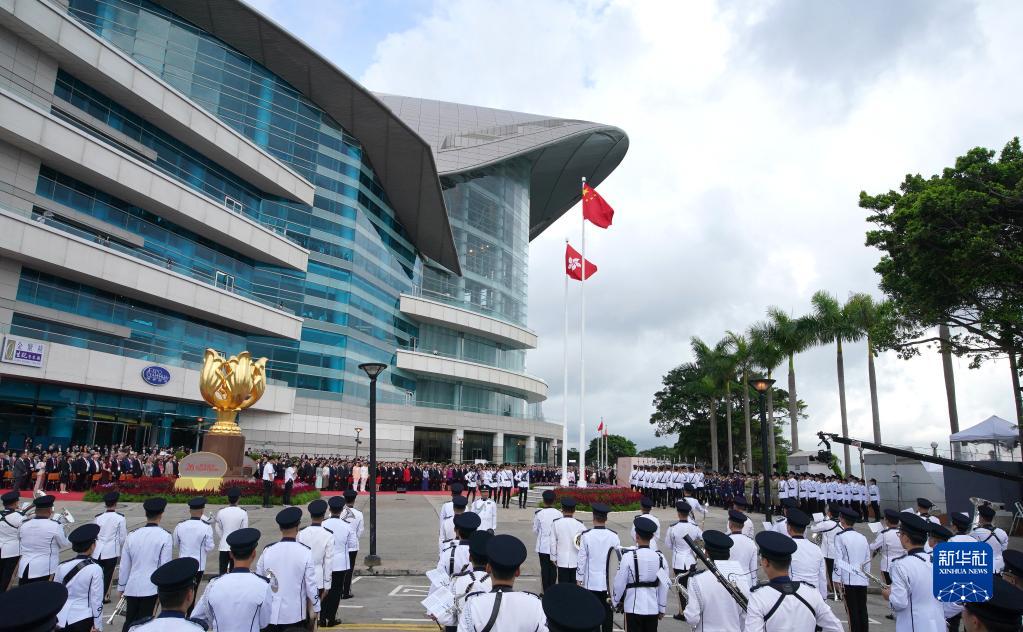 7月1日,香港特區政府在金紫荊廣場舉行升旗儀式,慶祝香港回歸祖國26周年。(新華社記者 呂小煒 攝)