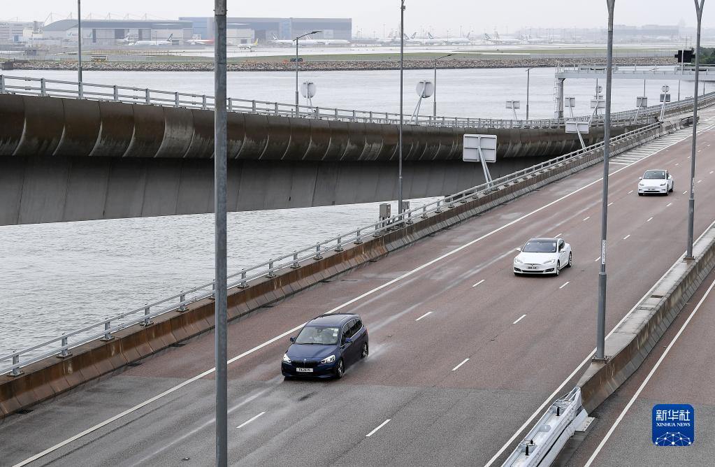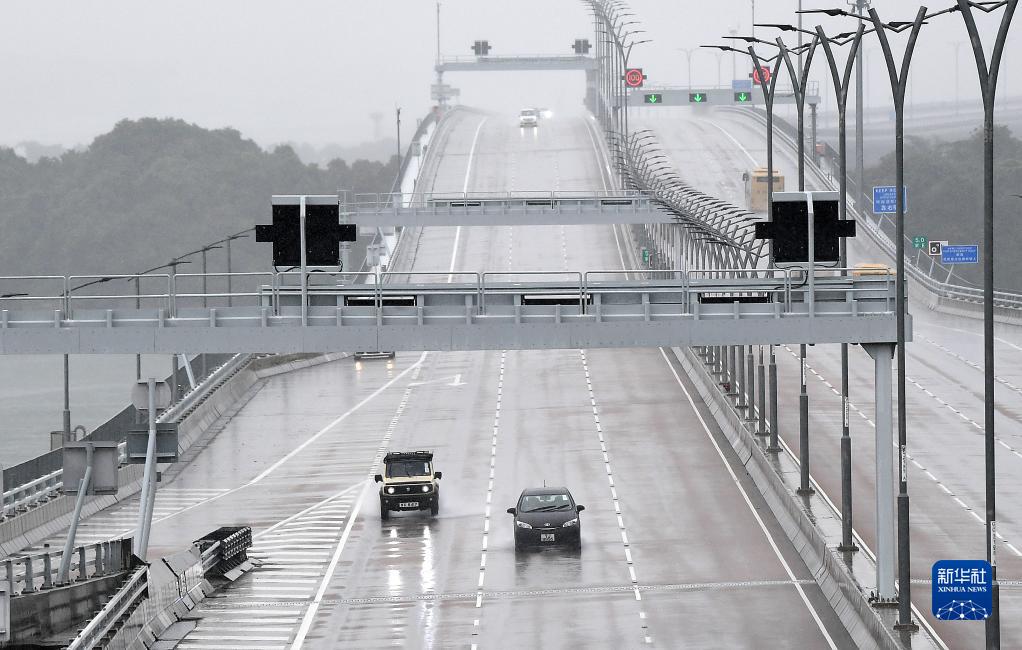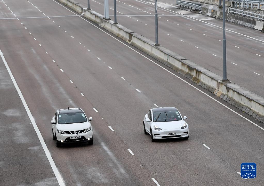 7月1日,香港本地單牌車行駛在港珠澳大橋香港段。(新華社記者 陳鐸 攝)