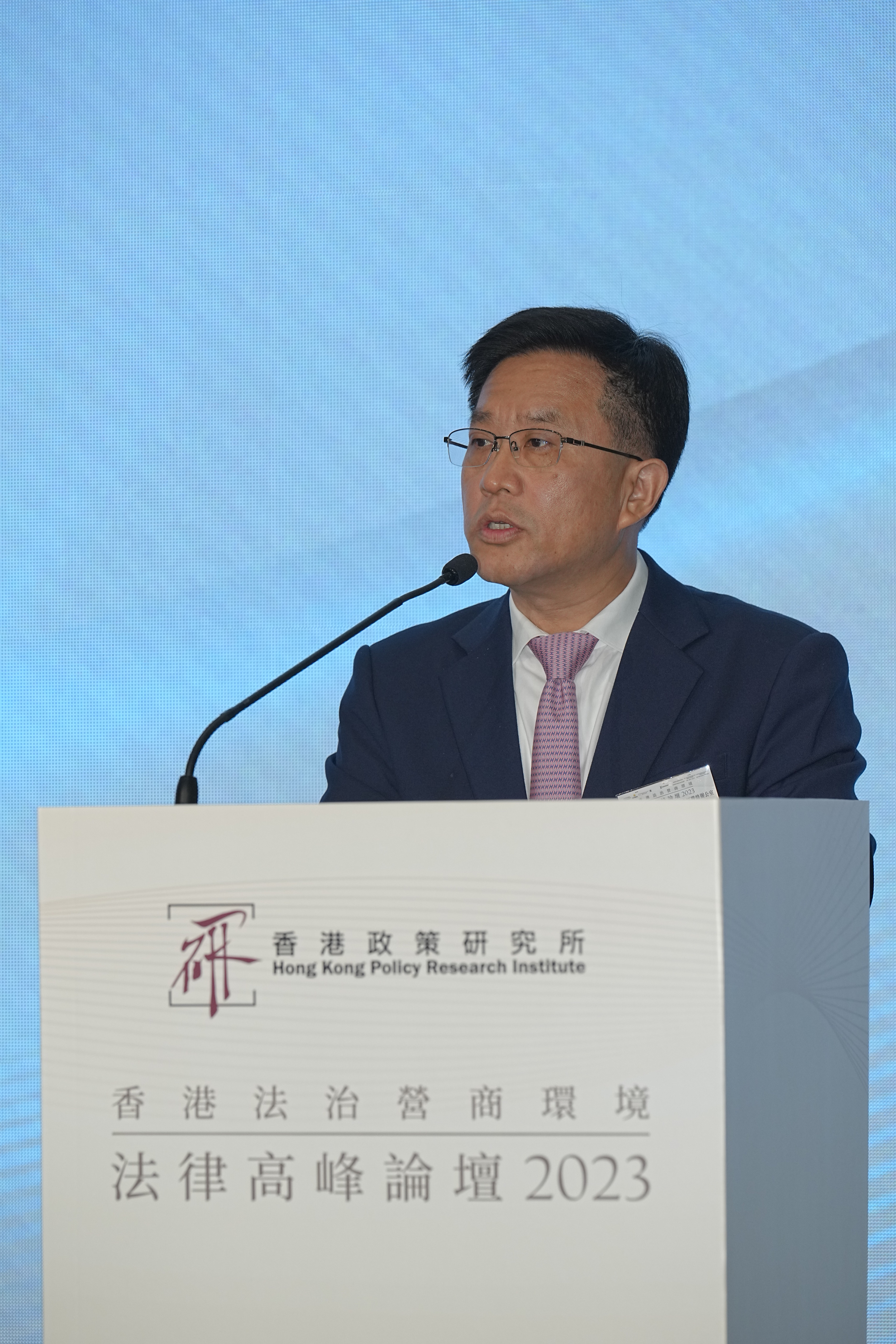 王松苗在致辭中表示,今年的法律高峰論壇,以香港法治營商環境為主題,邀請政界、商界、法律界的精英人士,激蕩思想、共商未來,正當其時、意義重大。普通法制度是香港營商環境的一面「金字招牌」。回歸以來,「一國兩制」下的香港法治讓市場主體更自由、營商環境更開放、商業行為更規範。香港國際金融、航運、貿易中心地位持續鞏固,連續26年被評為「全球最自由經濟體」。法治是最好的營商環境。面向未來,香港要繼續保持和發展普通法制度,不斷培育「興」的動能、注入「興」的活力,開啟由治及興「加速度」,爭當中國式現代化排頭兵,以法治的確定性應對前進路上的各種不確定性。