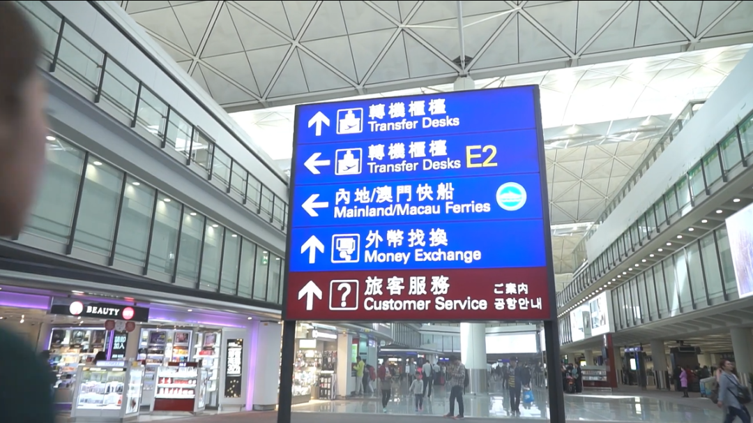 無需入境香港,直接進入香港機場控制區,通過安全檢查,領取過境退稅,便可搭乘旅客捷運系統(僅需約3分鐘),進入香港國際機場1號客運大樓。