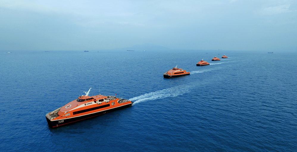 乘坐高速客輪前往香港機場海天碼頭航程約50分鐘,每日4進4齣。