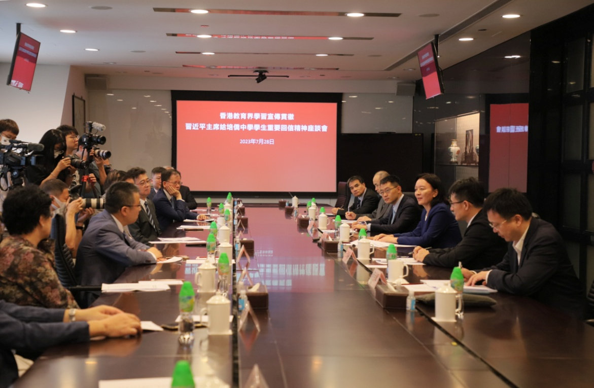 香港特區政府教育局負責人出席會議並發言,部分法定機構、教育社團負責人及中小學校長代表等近20人座談交流。