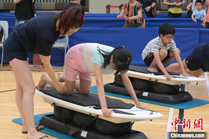 市民體驗陸上沖浪健身。(陳永諾 攝)