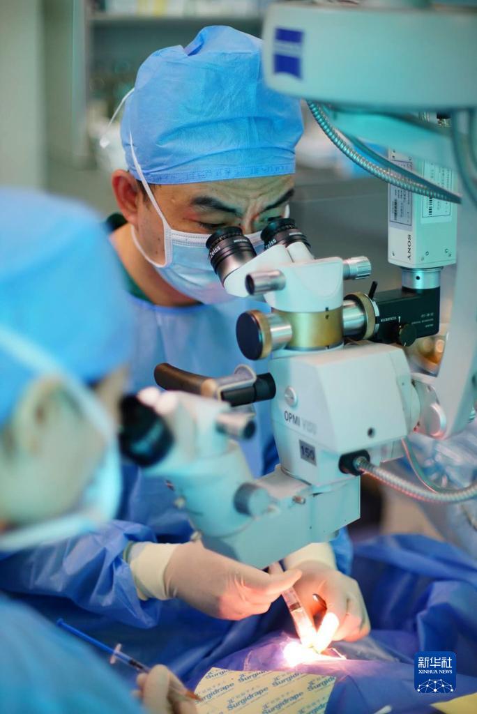 眼科醫生在「健康快車」上為患者實施手術(資料照片)。(新華社發)