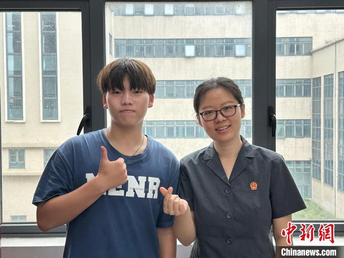 8月10日,在廣州南沙法院實習的香港青年張柏驥與他的指導法官佘麗萍合影。(方偉彬 攝)
