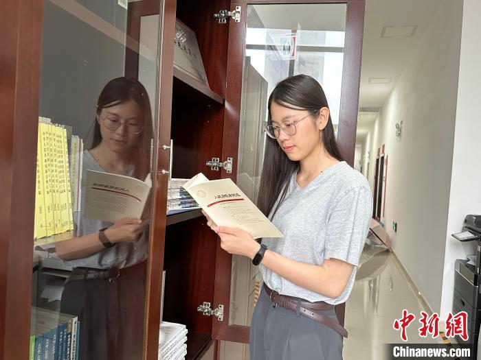 8月10日,香港青年周子涵在廣州南沙法院實習,為寫好判決書她查閱相關案例。(方偉彬 攝)