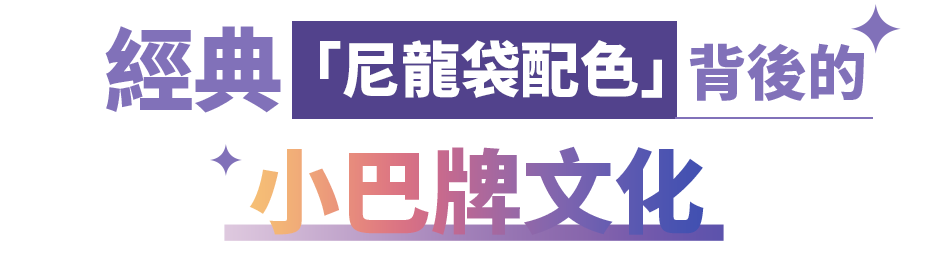 小巴牌,是一種白底紅藍色的塑料名牌,特徵鮮明,且與「風靡世界」的深水埗紅白藍尼龍袋配色相近,所以顯得港風滿滿。
