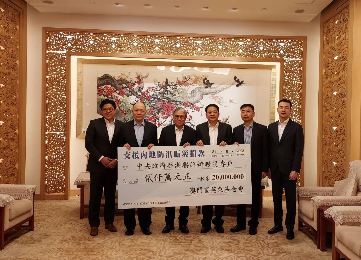 澳門霍英東基金會捐款2000萬港元。(圖片來源:中央政府駐港聯絡辦)