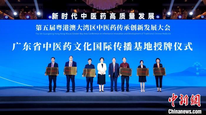 本屆大會公布了首批6家廣東省中醫藥文化國際傳播基地並舉行授牌儀式。(佛山市衛健局供圖)