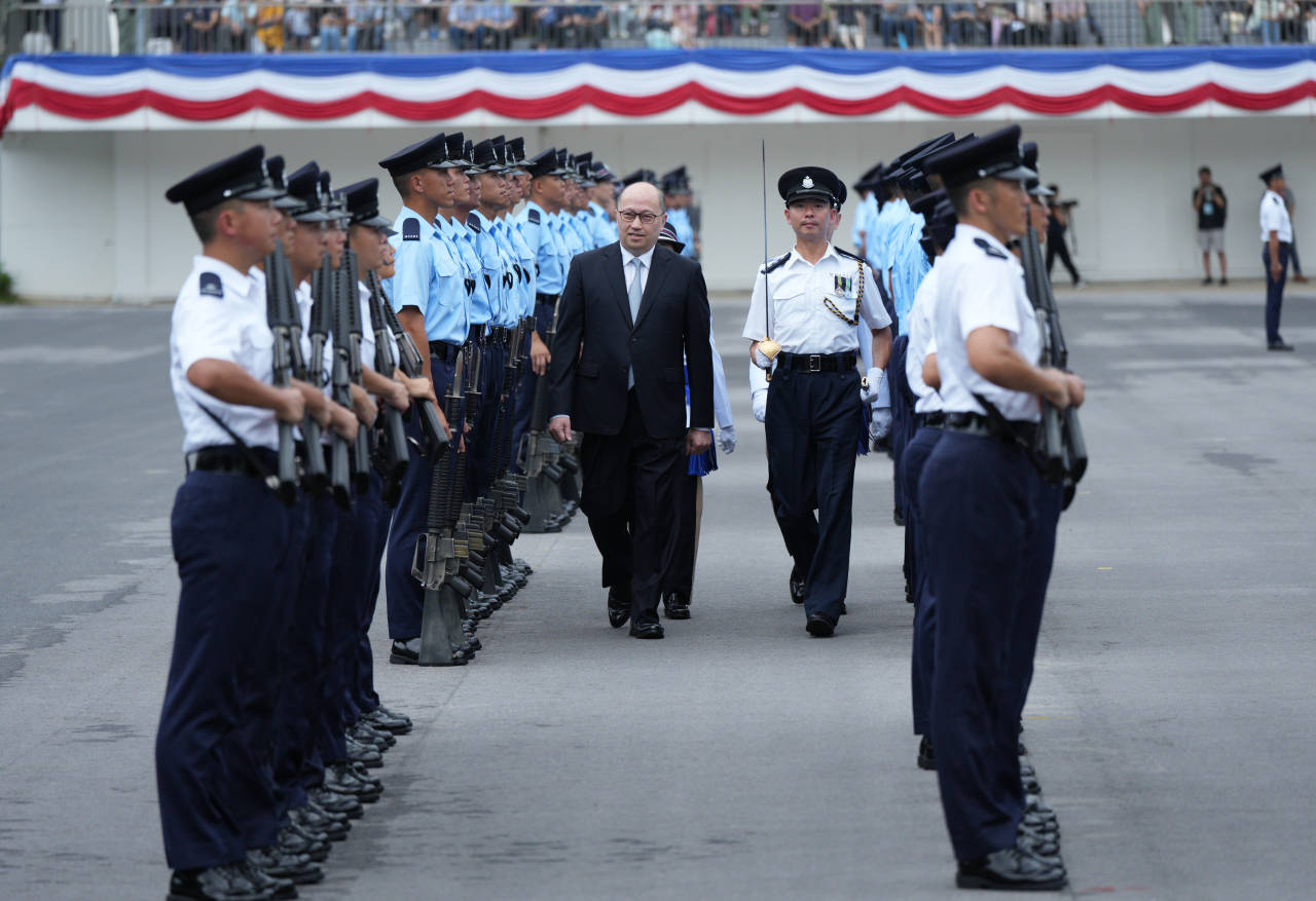 鄭雁雄檢閱學員結業會操。(圖片來源:中央政府駐港聯絡辦)