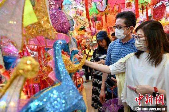 各種不同外形的傳統燈籠吸引市民購買。(中新網記者 李志華 攝)