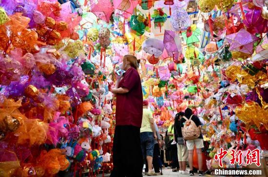 香港元朗「燈籠街」近千傳統燈籠迎中秋氣氛濃