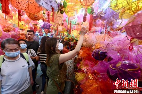 市民挑選傳統燈籠。(中新網記者 李志華 攝)