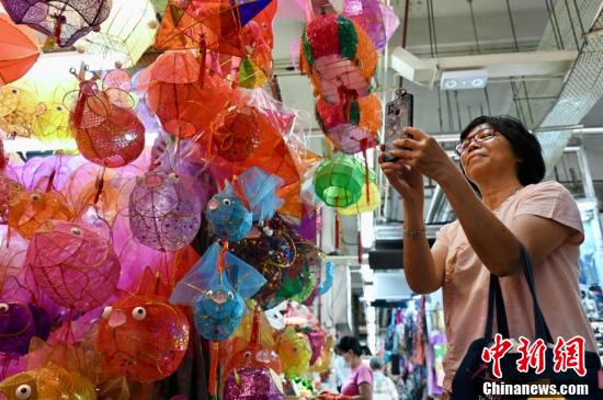 各式各樣的傳統燈籠吸引市民拍照。(中新網記者 李志華 攝)