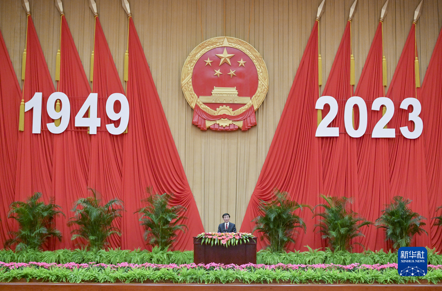王滬寧表示,新中國成立74年來,中國共産黨團結帶領全國各族人民同心同德、艱苦奮鬥,成功開闢和發展了中國特色社會主義道路,中華民族迎來了從站起來、富起來到強起來的偉大飛躍。進入新時代,在以習近平同志為核心的中共中央堅強領導下,黨和國家事業取得歷史性成就、發生歷史性變革,為實現中華民族偉大復興提供了更為完善的制度保證、更為堅實的物質基礎、更為主動的精神力量。