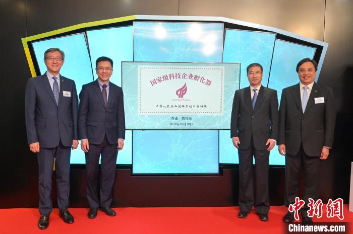 香港數碼港管理有限公司獲得科技部正式授牌,成為「國家級科技企業孵化器」。圖為香港特區政府創新科技及工業局局長孫東(左二)與科技部副部長張廣軍(右二)出席活動。(香港特區政府新聞網 供圖)
