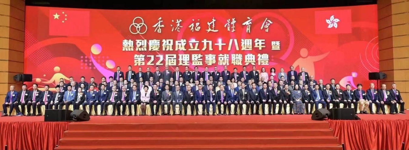 本網訊 11月26日,香港福建體育會慶祝成立九十八周年暨第22屆理監事就職典禮在香港會展中心舉行。中央政府駐港聯絡辦副主任何靖、福建省政協副主席黃如欣、香港特區政府政制及內地事務局局長曾國衛等共同主禮。社會各界嘉賓1300多人出席。