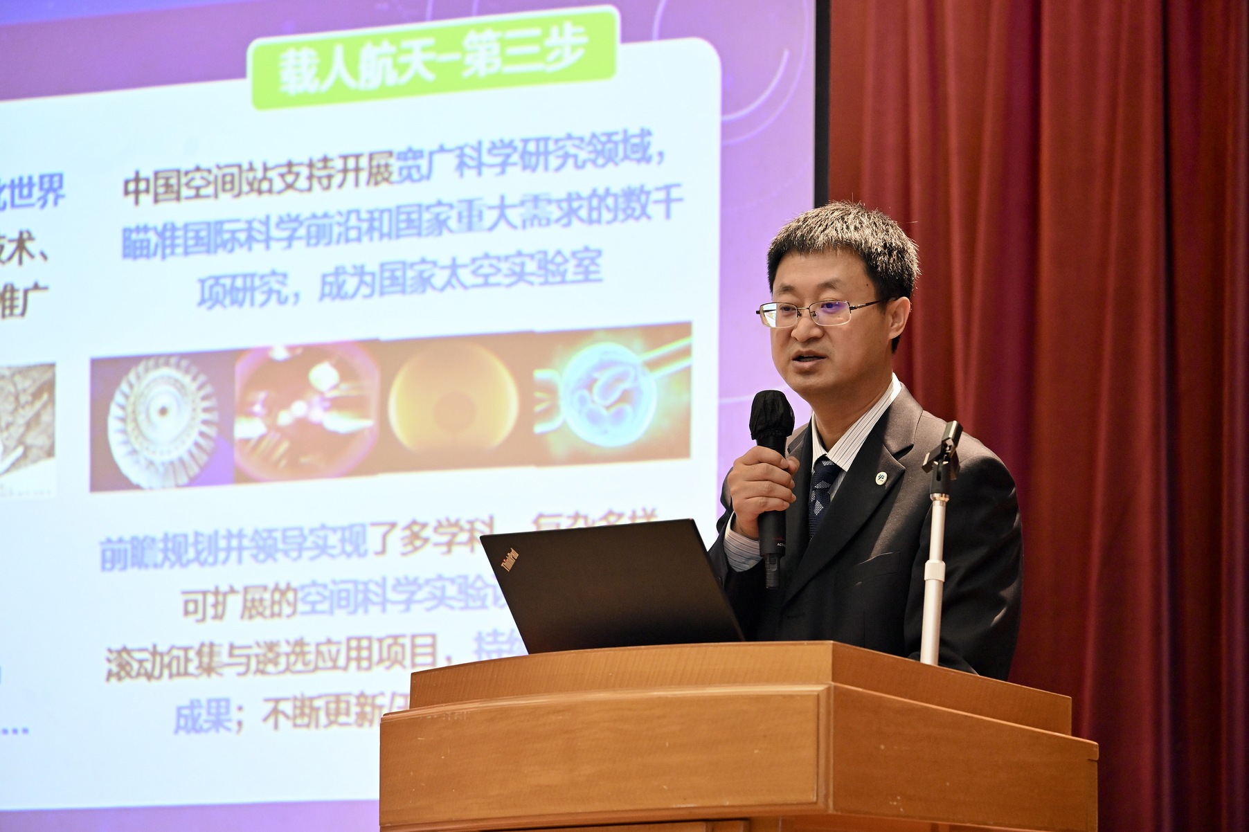 中國載人航天工程代表團11月29日繼續在港訪問,圖示代表團成員鐘紅恩出席在馬頭涌官立小學(紅磡灣)舉行的「中國載人航天工程代表團與中、小學生真情對話」活動。