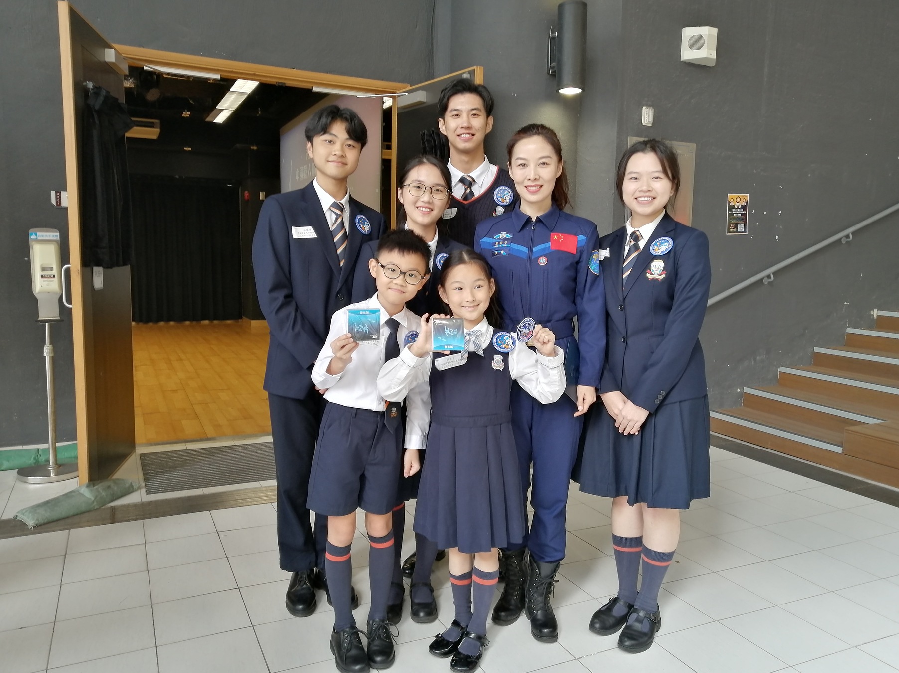 中國載人航天工程代表團11月29日繼續在港訪問,圖示神舟十三號乘組航天員王亞平(第二排右二)出席在香港浸會大學附屬學校王錦輝中小學(小學部)舉行的「中國載人航天工程代表團與中、小學生真情對話」活動。