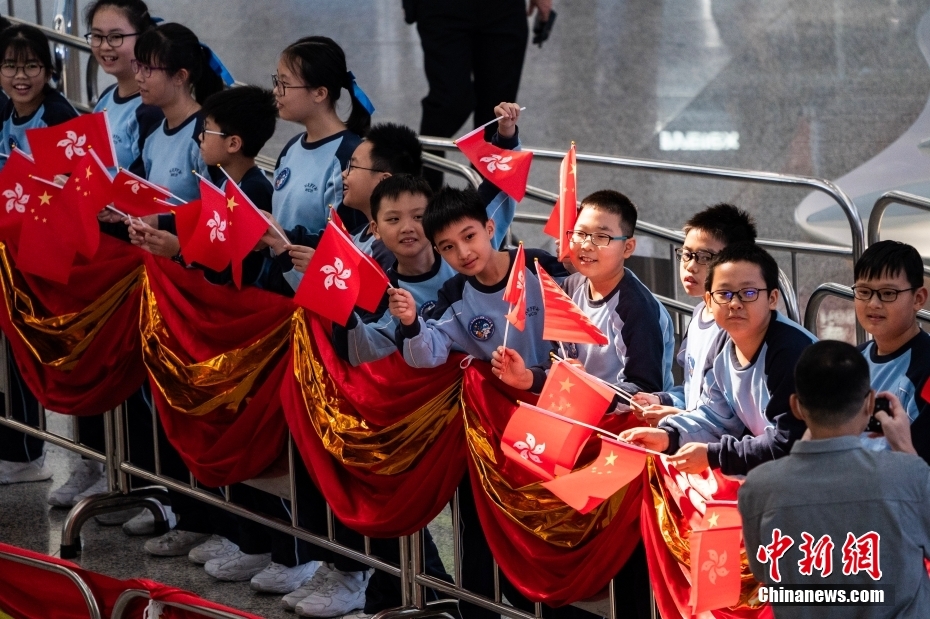 11月28日,中國載人航天工程代表團抵達香港,開啟對香港特區為期四天的訪問。代表團在香港國際機場到達大廳受到香港青少年等的熱烈歡迎。圖為青少年手持中國國旗和香港特區區旗等待代表團抵達。