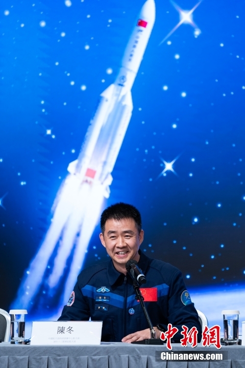 11月28日,抵達香港訪問的載人航天工程代表團在香港會展中心舉行媒體見面會。圖為中國航天員科研訓練中心航天員大隊大隊長、神舟十四號乘組指令長陳冬回答記者提問。中新社記者 侯宇 攝