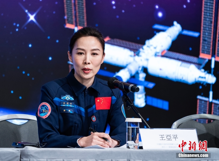 11月28日,抵達香港訪問的載人航天工程代表團在香港會展中心舉行媒體見面會。圖為神舟十三號乘組航天員代表王亞平回答記者提問。中新社記者 侯宇 攝