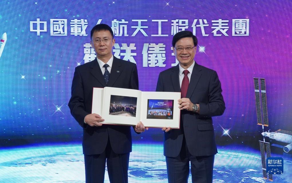 在離開香港前,香港特區政府在禮賓府為代表團舉行了歡送儀式。香港特區行政長官李家超致辭時表示,通過這次訪問,相信香港市民都能深深感受到中國人在實現航天夢的征程上,具有堅定的奮鬥決心。香港市民也為國家在航天科技上取得的非凡成就,深感自豪。