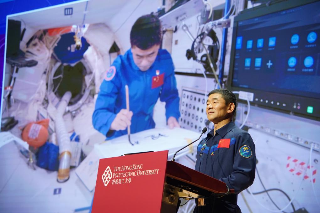 11月30日,神舟十二號乘組航天員劉伯明在香港理工大學分享。新華社記者 呂小煒 攝