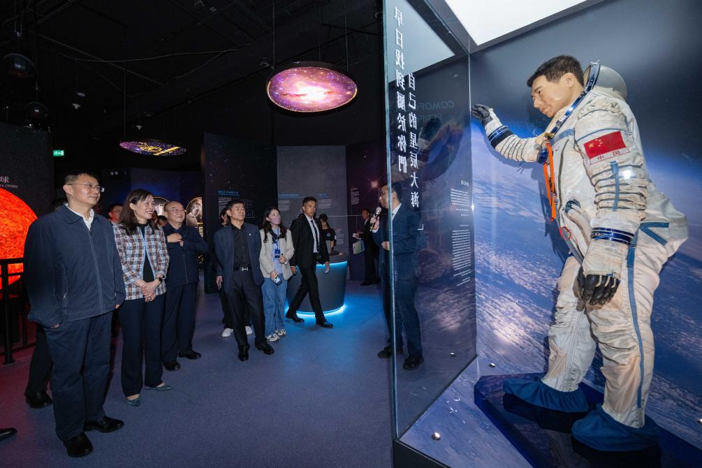 12月3日,中國載人航天工程代表團一行參觀澳門科學館。新華社記者 張金加 攝
