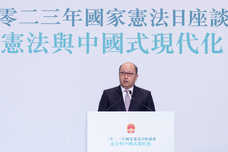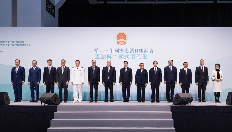 本網訊 今年12月4日是第10個國家憲法日。香港特區政府、中央政府駐港聯絡辦共同舉辦2023年國家憲法日座談會,主題為「憲法與中國式現代化」。香港特區行政長官李家超、中央政府駐港聯絡辦主任鄭雁雄出席並致辭。