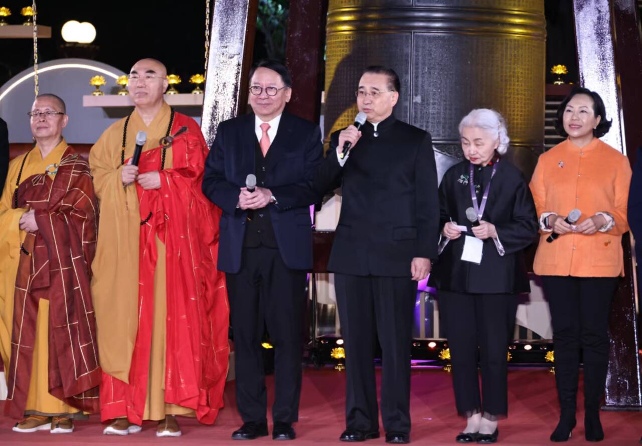 本網訊 12月31日午夜,「大佛鐘聲 福佑香江——元旦叩鐘祈福活動」在寶蓮禪寺大佛廣場隆重舉行。香港特區政府政務司司長陳國基、中央政府駐港聯絡辦副主任劉光源、特區政府民政及青年事務局局長麥美娟出席,與香港佛教聯合會會長寬運法師、寶蓮禪寺方丈凈因法師共同叩響辭舊迎新鐘聲並致新年祝福。香港各宗教領袖和1000 餘名社會各界人士共同出席了活動。