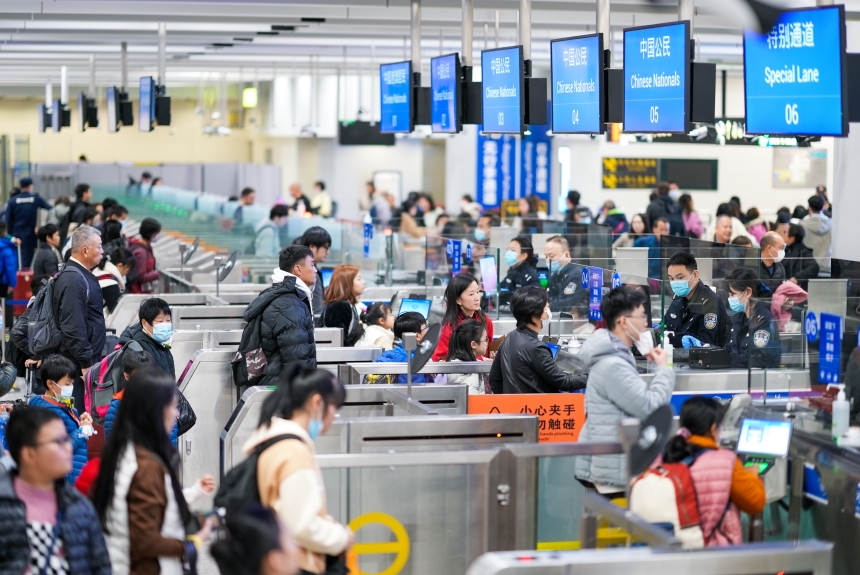 滾滾人流中,有期待團圓的歸客,有歡樂出行的游人,有求知若渴的學子,還有通商惠工的白領……一本證件、一聲「您好」,億萬次的順暢通行,共同編織成粵港澳大灣區融合併進、蓬勃發展的燦爛圖景。